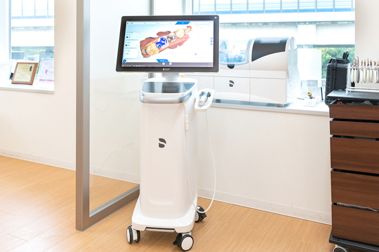 粘土のような素材を用いる従来の型取りに比べ、患者さまのご負担が軽くなる上、矯正治療のシミュレーションを患者さま自身に確認していただけるという利点があります。
